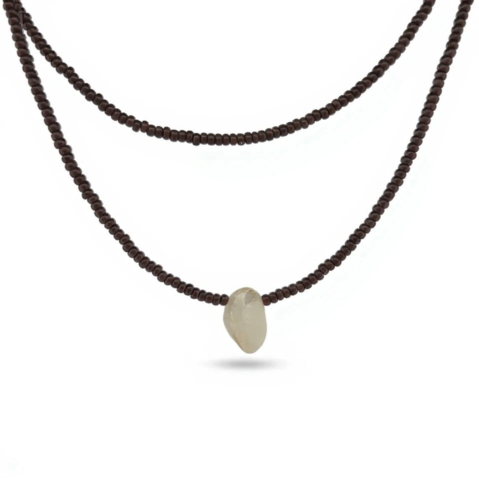 The Belle Set is two stunning chocolate 11/0 size beaded necklaces one with a stunning Keshi freshwater pearl as the centrepiece.