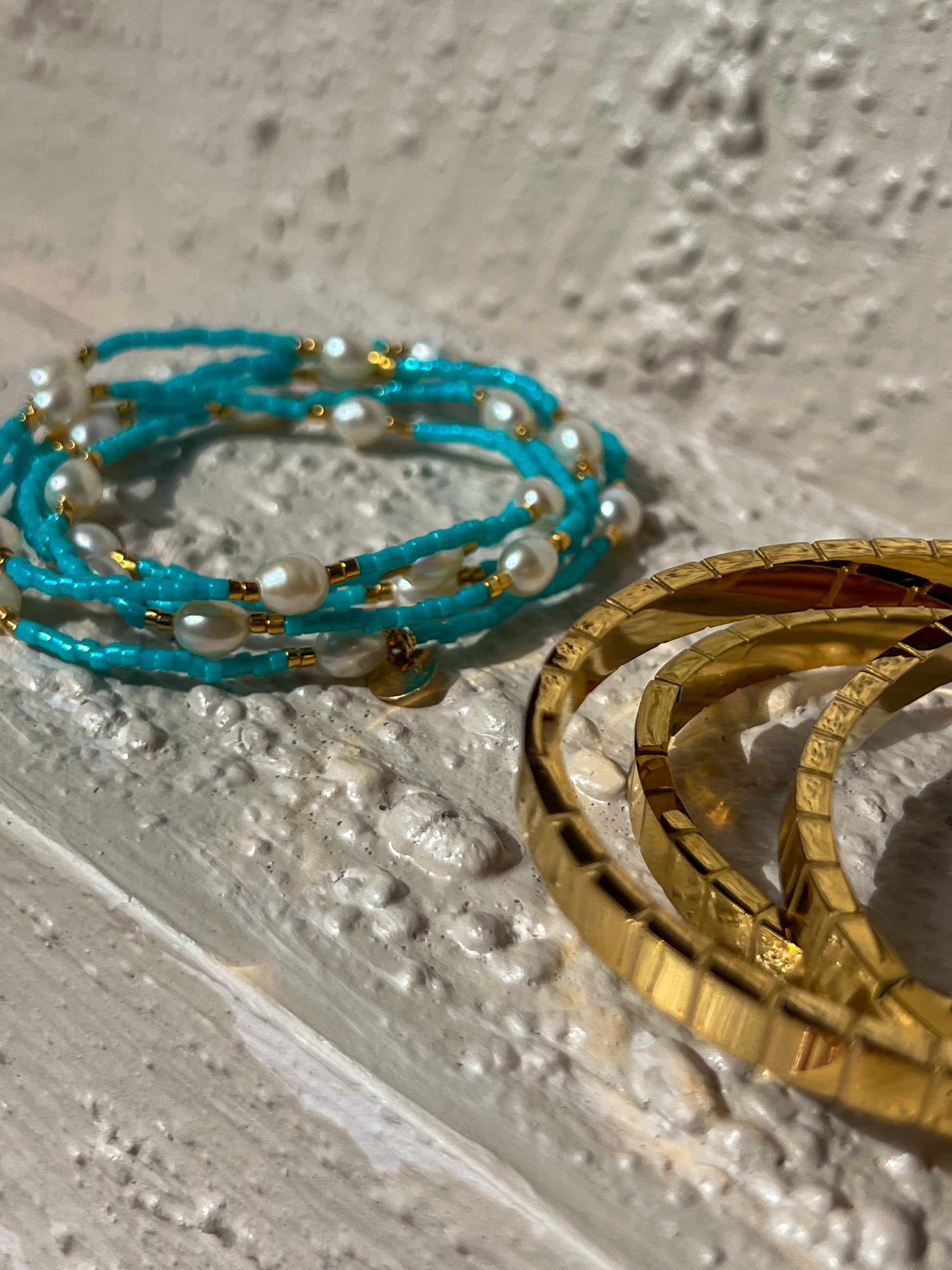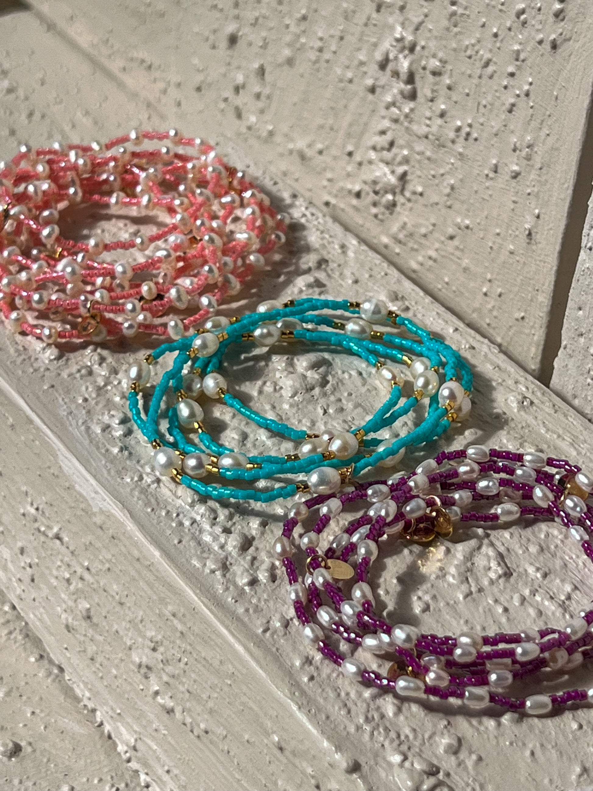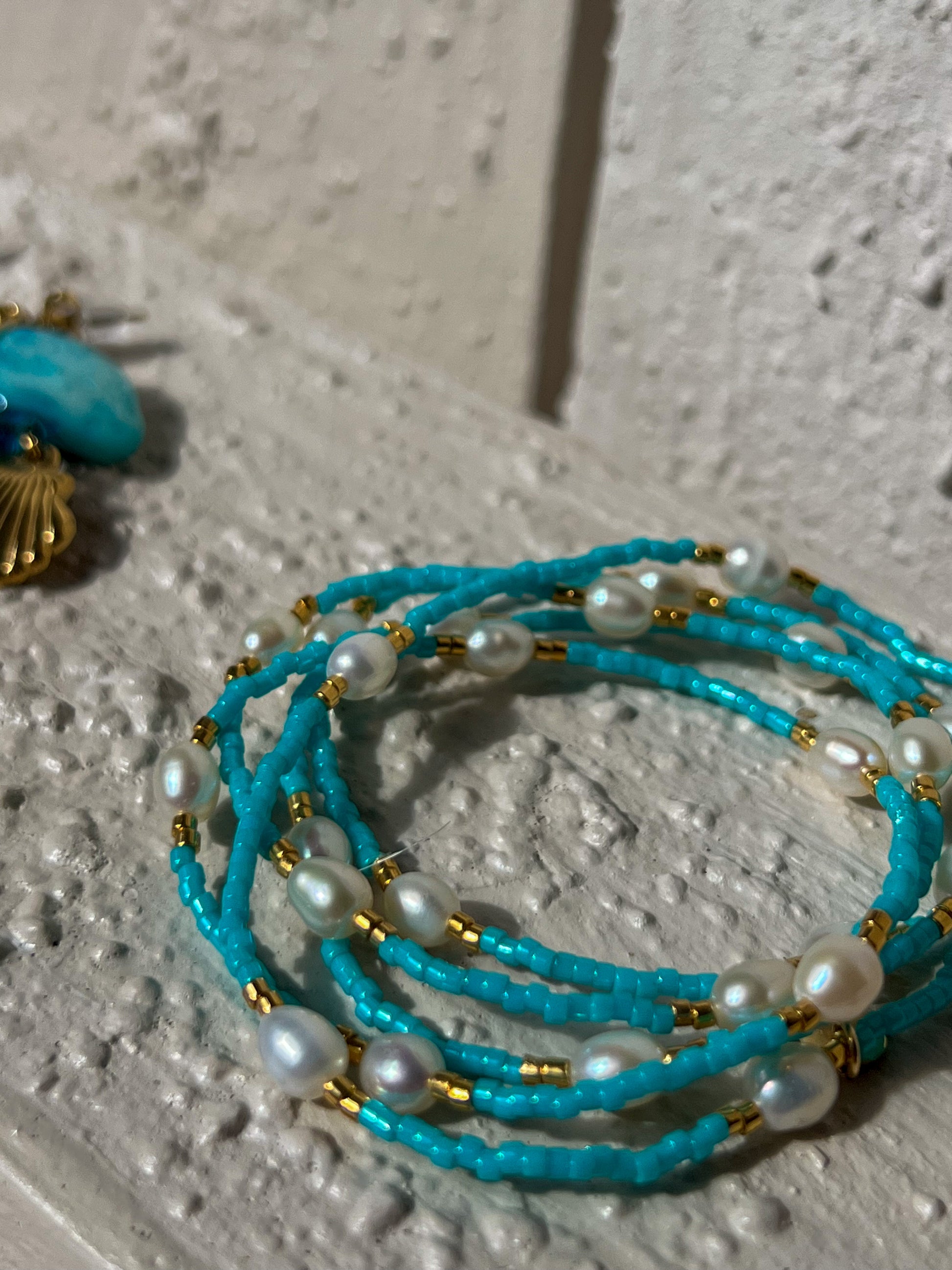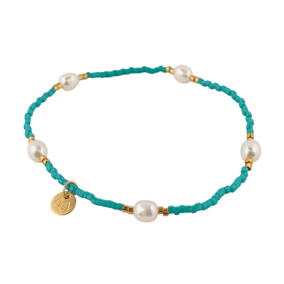 Cora is the pop of Turquoise your bracelet stack has been waiting for. Our Cora beaded bracelet designed to be worn every day or layered with ease. Handcrafted on the Sunshine Coast, QLD, this piece combines peachy pink Miyuki Delica beads with luminous freshwater pearls, creating a beautiful balance of colour, texture, and softness.