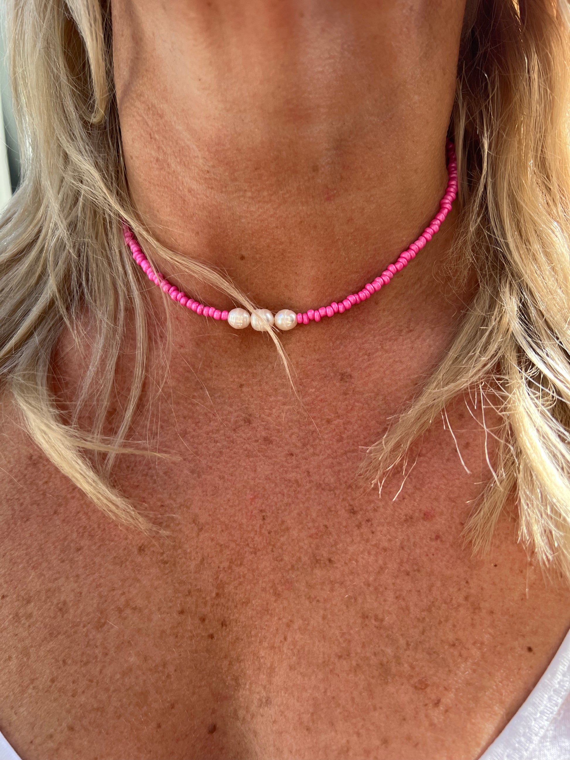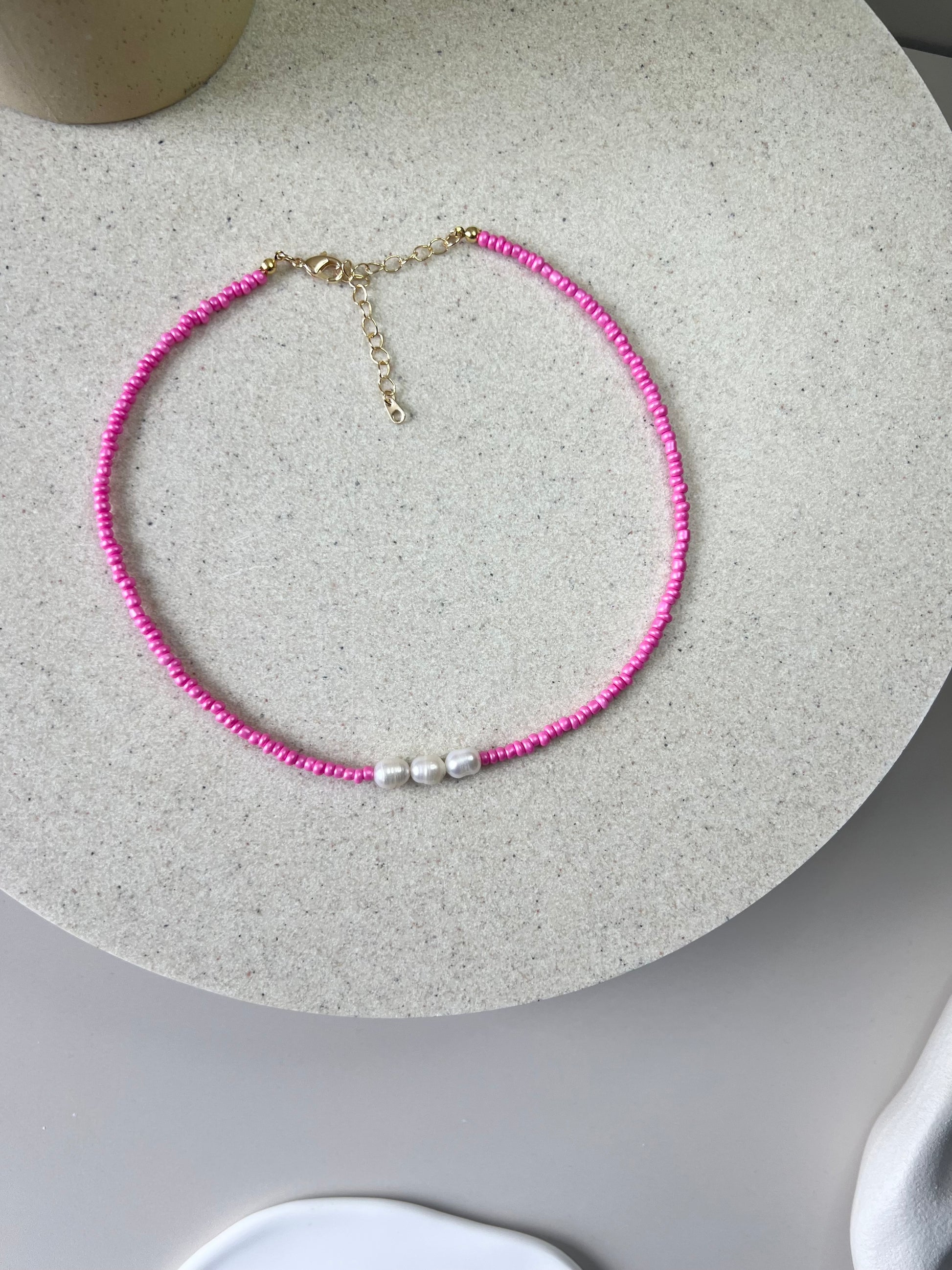 - 35cm Hot Pink Bead Necklace