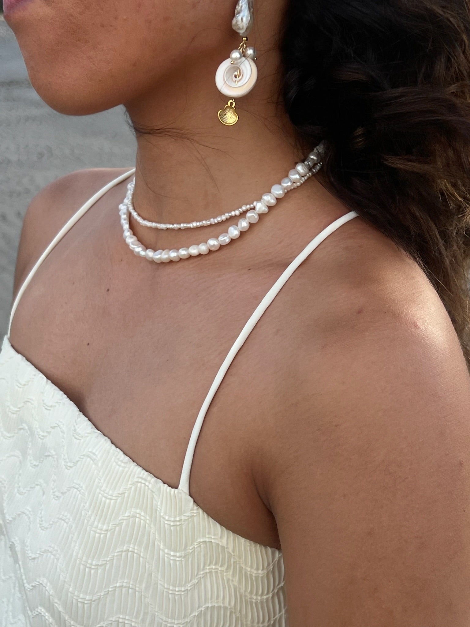 Our Inaya Necklace is Handmade on the Sunshine Coast in QLD. Consisting of two rows of Freshwater Cultured Pearls and finished with Gold Filled Findings. This is the perfect statement necklace finishing off any outfit your wearing from the beach to the bar